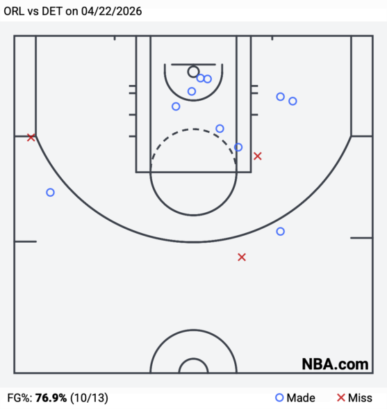 Detroit’s 6-of-10 to start the game, with a Duncan Robinson 3-pointer and Tobias Harris fast-break jam sending the Magic to a timeout in the early going.
