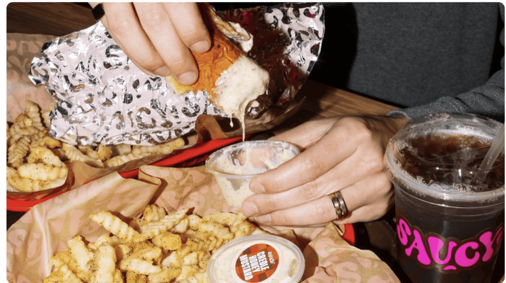 This location of the chicken fingers with sauces concept will serve as Saucy!’s flagship location, and as such it will have some exclusive and brand-heavy creations. As for the experience itself, the new fast-casual restaurant has a few dozen items listed on the menu, but the entire concept revolves around two things: crispy, hand-battered fried chicken tenders, and the dozen-plus sauces they’d like you to dip those tendies in. You can order the tenders on their own with dipping sauces and fries, or you can level up with the “chick’itos” (tacos), “grand’itos” (burritos), sandwiches, rice bowls or salads, all loaded up with tenders and sauce.