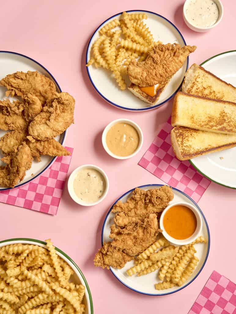 If you’re just in it for the chicken and sauce, we respect that, too. In addition to straight up tenders, offerings include saucy kimchi chicken tacos, ranchero chicken burritos, or even a saucy chicken Caesar salad. Sides include crinkle cut fries, brussels sprouts, mac and cheese, and King’s Hawaiian toast.