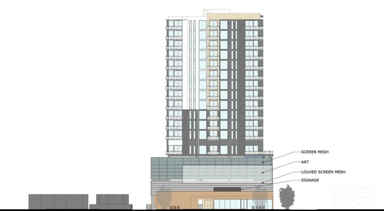 The venture would measure 18 stories. Image by Baker Barrios Architects