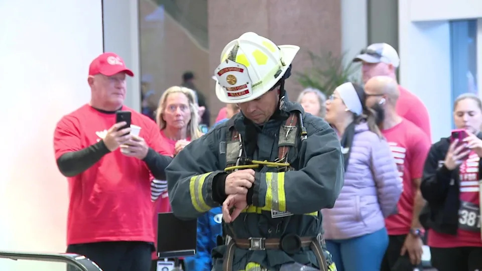 Dozens of local first responders took on the 41-story climb in full gear.