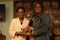 “This Woman’s Work” exhibit and induction at the Black Precinct. Marilyn Holifield. Esq (left), of Holland & Knight, and LaCriscia Fowlkes (right), museum education manager.