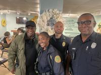(L-R) Gary Tyler, Overtown Commander Cooper, Overtown Sgt. Hendrex, and Overtown Officer Williams at the Black Police Precinct and Courthouse Museum.