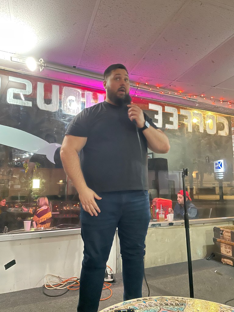Jake Ricca’s first comedy set was performed at Austin’s in 2017. “I thought you weren’t supposed to do the same set twice. That’s the opposite of how you get better. My first set felt great. People said ‘good set’ after. The second time went fine with new material. The third time I bombed hard and wondered if I should quit,” he says.“I didn’t understand you have to keep working bits until they click. The material evolves because you’re building it in front of people. You learn what an audience really is only by doing it again and again.” Credit: Sarah Kinbar