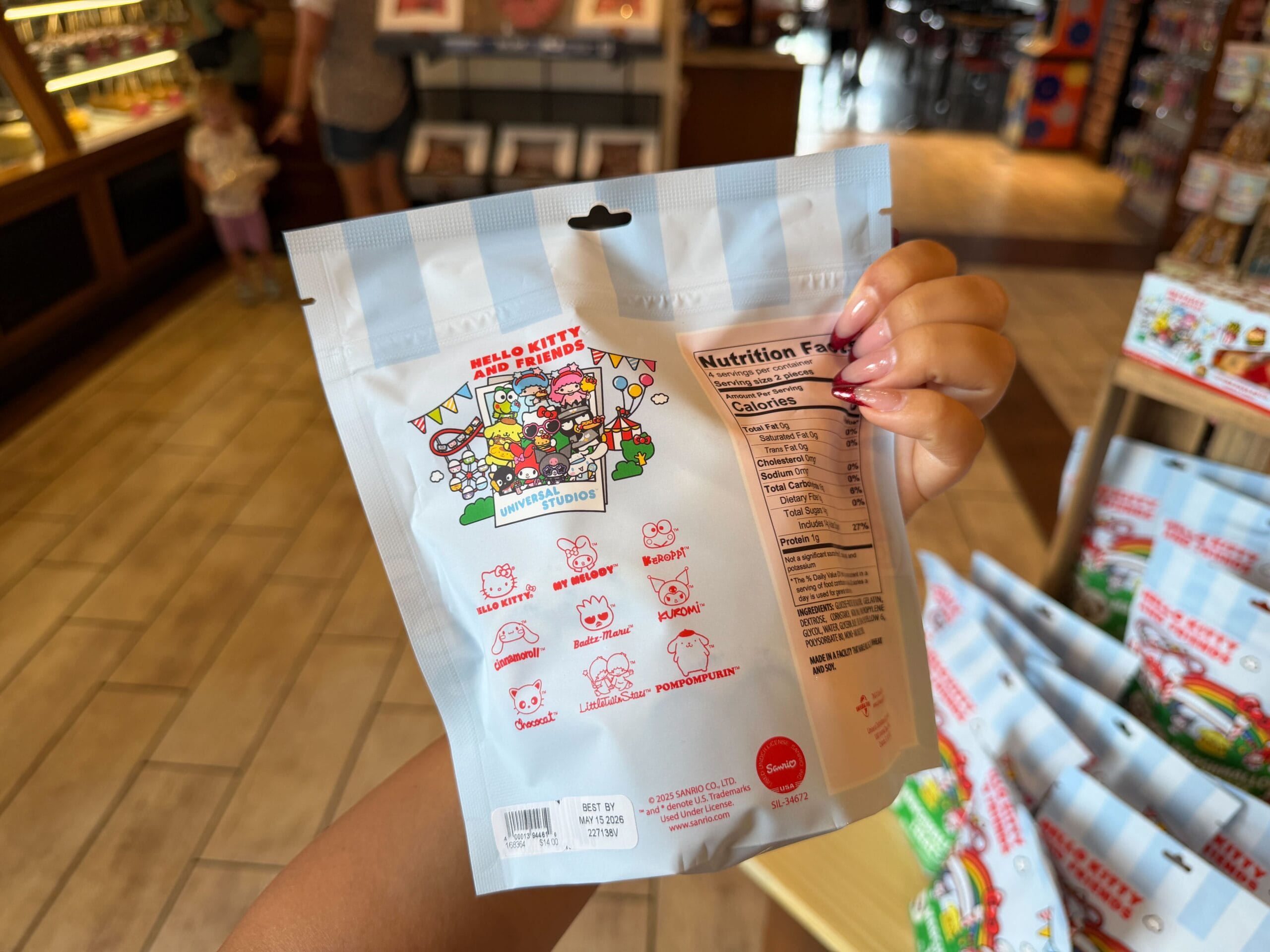 Inspired by Hello Kitty and her friends, the snack comes in a 2.8 oz bag — approximately 4 servings.