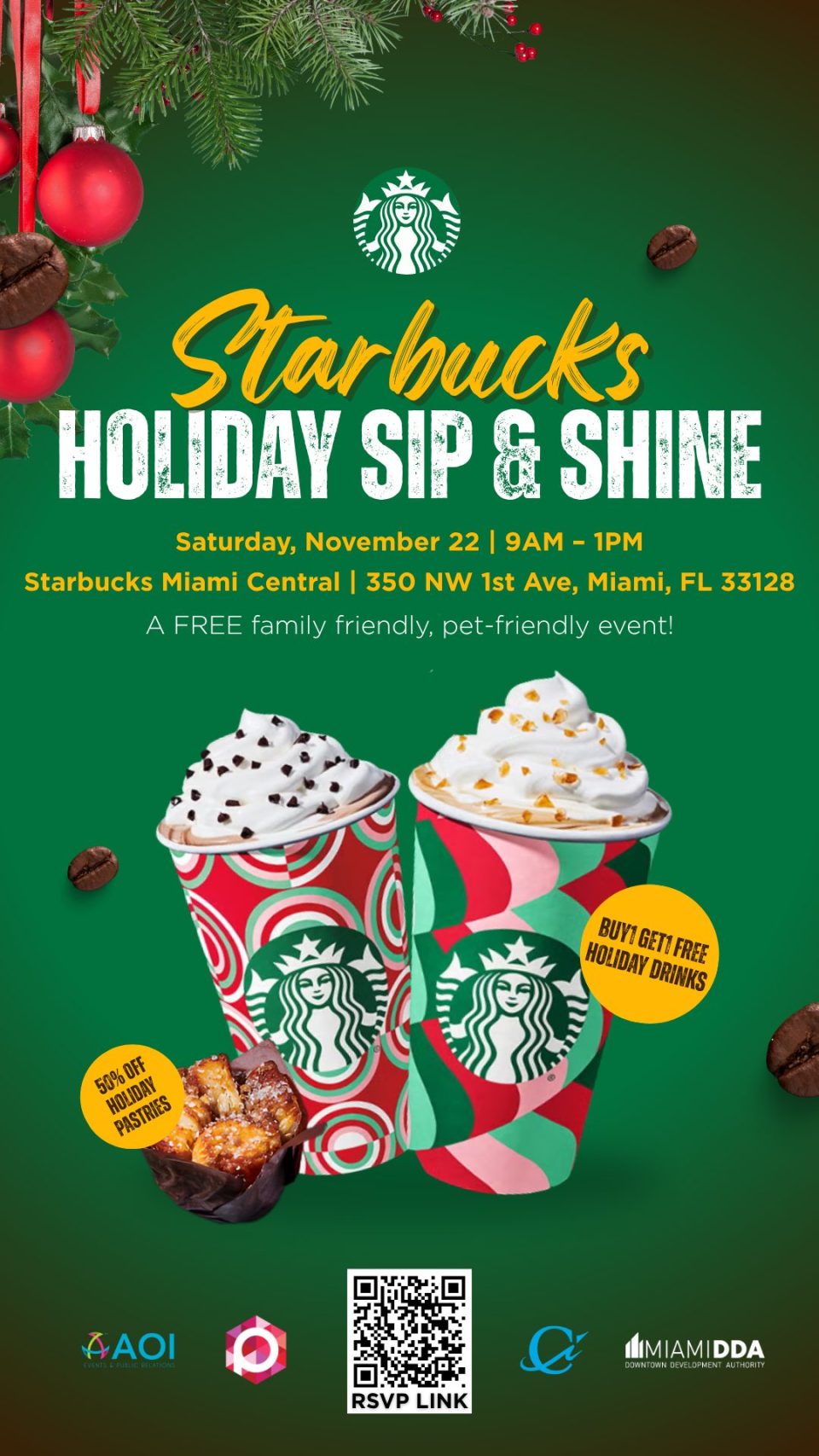 The event is hosted by Priceless One Management in collaboration with the Miami Downtown Development Authority, and AOI Events & PR further highlighting Starbucks’ ongoing commitment to supporting local community initiatives, small businesses, and cultural engagement.