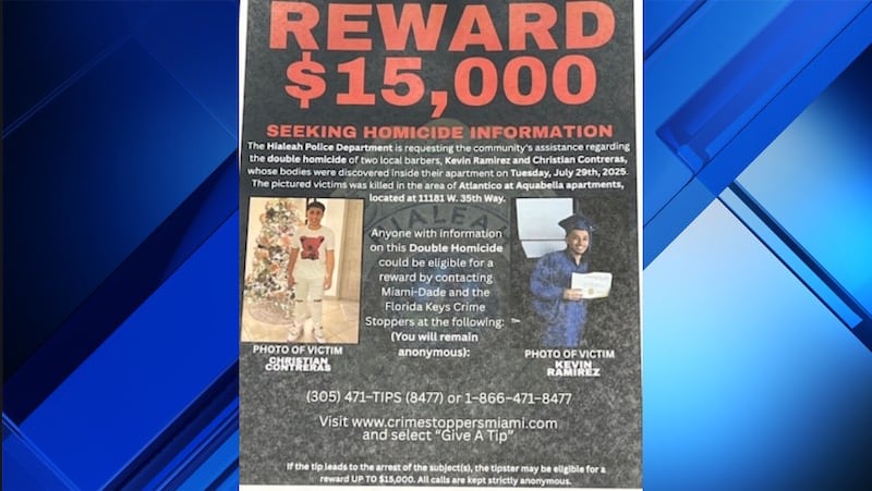 The victims, Kevin Ramirez, 18, and Cristian Rolando Contreras, 20, were discovered on July 29 inside Ramirez’s apartment at the Atlantico at Aquabella complex at 11181 W. 35th Way, according to investigators.