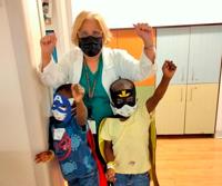 Dr. Ofelia Alvarez, pediatric hematologist at the University of Miami, with Ebony Stevens’ twins.