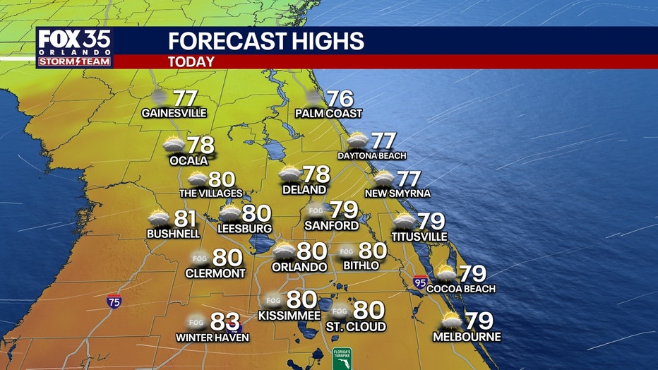 ORLANDO, Fla. – A few isolated areas of patchy dense fog will be possible this morning across Central Florida. This will lift and clear up by 8 a.m.-9 a.m.
