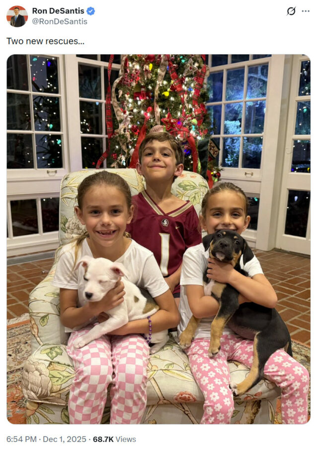 “‘Tis the season: ‘Ron DeSanta’ wrapping paper available for holidays” via A.G. Gancarski of Florida Politics — DeSantis supporters now have a new holiday novelty to unwrap, with the Restore Our Nation PAC selling “Ron DeSanta” Christmas wrapping paper for $25 a roll. The PAC is pitching the merch as a way to “wrap your gifts like your politics” while boosting its effort to take the Governor’s Florida Blueprint national. A less DeSantis-themed “Freedom Is My Favorite Gift” design is also available, along with Alligator Alcatraz shirts and branded fleece pullovers. The push comes as the committee looks to improve its finances heading into 2025; its midyear report showed more than $4.4 million on hand but a negative cash flow, raising $260,000 and spending about $455,000 in the first six months of the year.