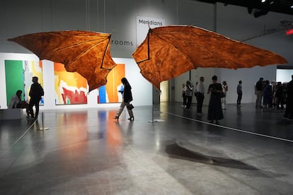 Visitors walk past Huang Yong Ping’s ‘Double Wing’ installation at Art Basel Miami Beach on Wednesday, December 3, 2025, in Miami Beach, Florida.Associated Press / LaPresse (APN)