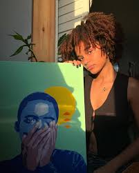 Artist Thalia Bouchereau with one of her works. (Photo/Instagram)