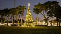 A decorated Christmas tree glows at Roberto Clemente Park ahead of the park’s holiday festival, So Winter Wonderland. The event will feature live music, games and a tree lighting.