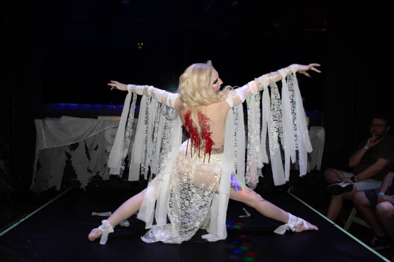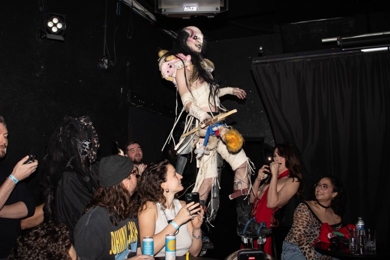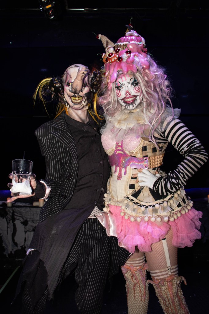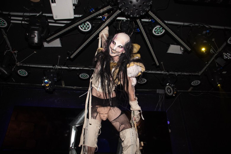 Next up was the drag portion of the evening, featuring Zade Black, Sixx Black, Anesthesia, Sue Cyde and Opulence Black all going extra hard before the trio of Dragula alumni: Dollya Black, Victoria Elizabeth Black and Abhora. The photos below ably tell the tale, but Abhora teetering on stilts above the audience, swinging around a Mickey Mouse mace while strobes flashed and Uniform blasted, was a personal highlight of the year.