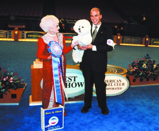 In 2001, AKC’s first national champion was the bichon frise “J.R.” (Courtesy of American Kennel Club)