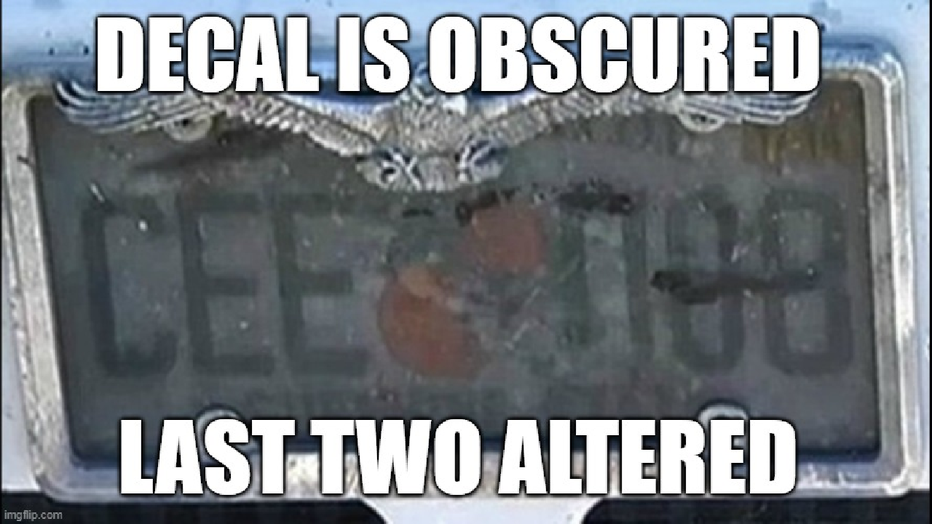 This license plate is an example in which a driver will face fines or jail time under Florida 2025 license plate obscurement statute. (Source: Casselberry Police Department)