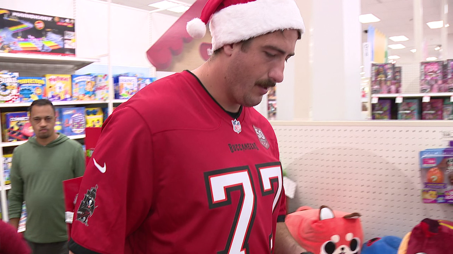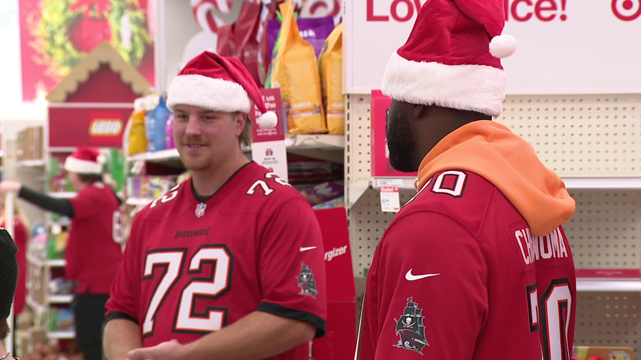 “This is awesome,” Bucs offensive tackle Charlie Heck said. “This is what we really look forward to as an O-line. It’s our favorite time of the year – Christmas. Being out there with the kids and helping them shop, seeing their excitement walking down the aisles, this is an awesome time of the year.”
