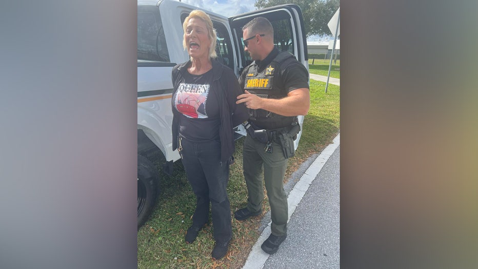 JENSEN BEACH, Fla. – A Florida woman who may have been trying to look like Santa Claus in a red hat with a white pompom acted more like the Grinch when deputies said she stole toys intended for a needy family.