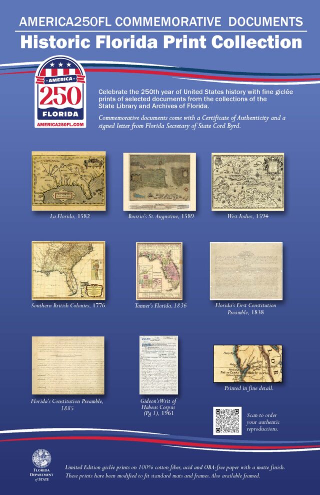 “Through these products, we are making history tangible,” Byrd said. “These reproductions of key documents in Florida’s history help citizens connect with the moments that forged Florida and the United States.”