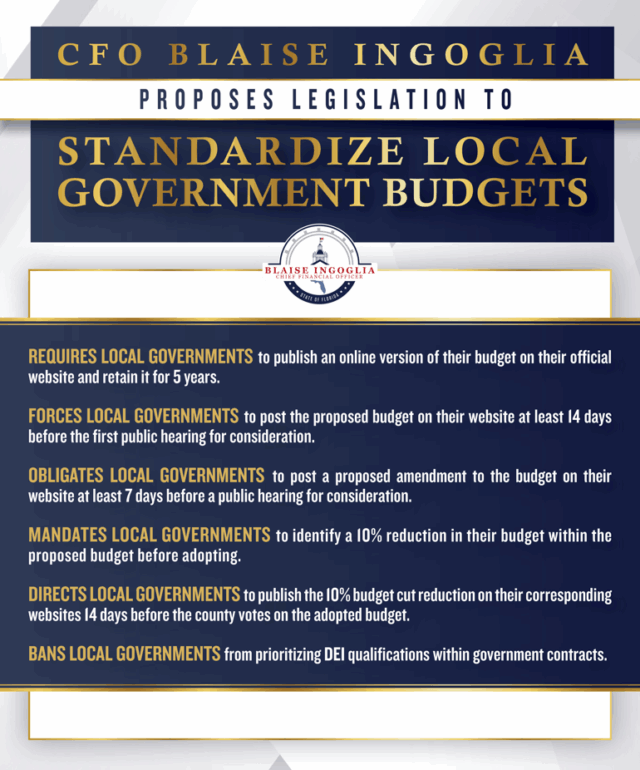 This week in Tampa, Chief Financial Officer Blaise Ingoglia announced that his top legislative priority this Session is to boost local government transparency and formally establish the Florida Agency for Fiscal Oversight (FAFO) in state statute.