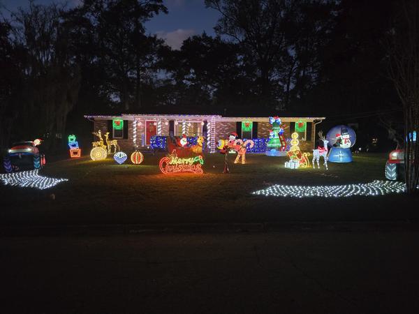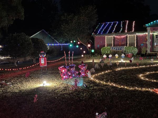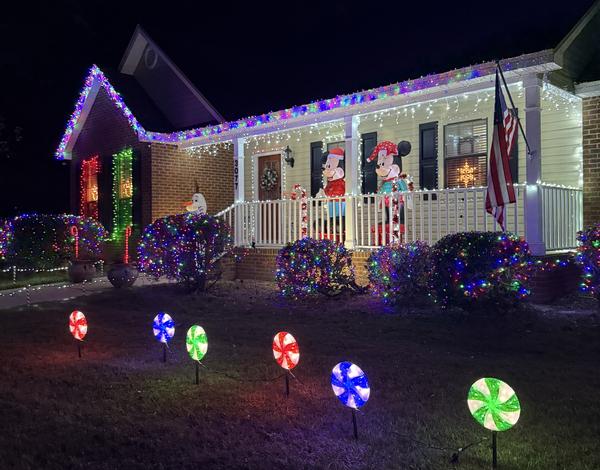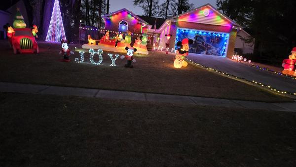 We have 3 Christmas trees made of lights, thousands of Christmas lights on the house and in the yard with our candies and snowman. Mickey and Minnie wave from the porch and Olaf at the front door wishing everyone a very merry Christmas!    More »