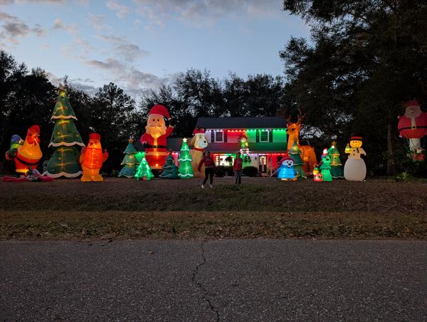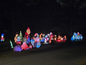 Lights dancing to christmas music (dusk until around 8:30pm, and then the lights will be stationary), and inflatables galore! Our family loves decorating our house and yard each year!    More »