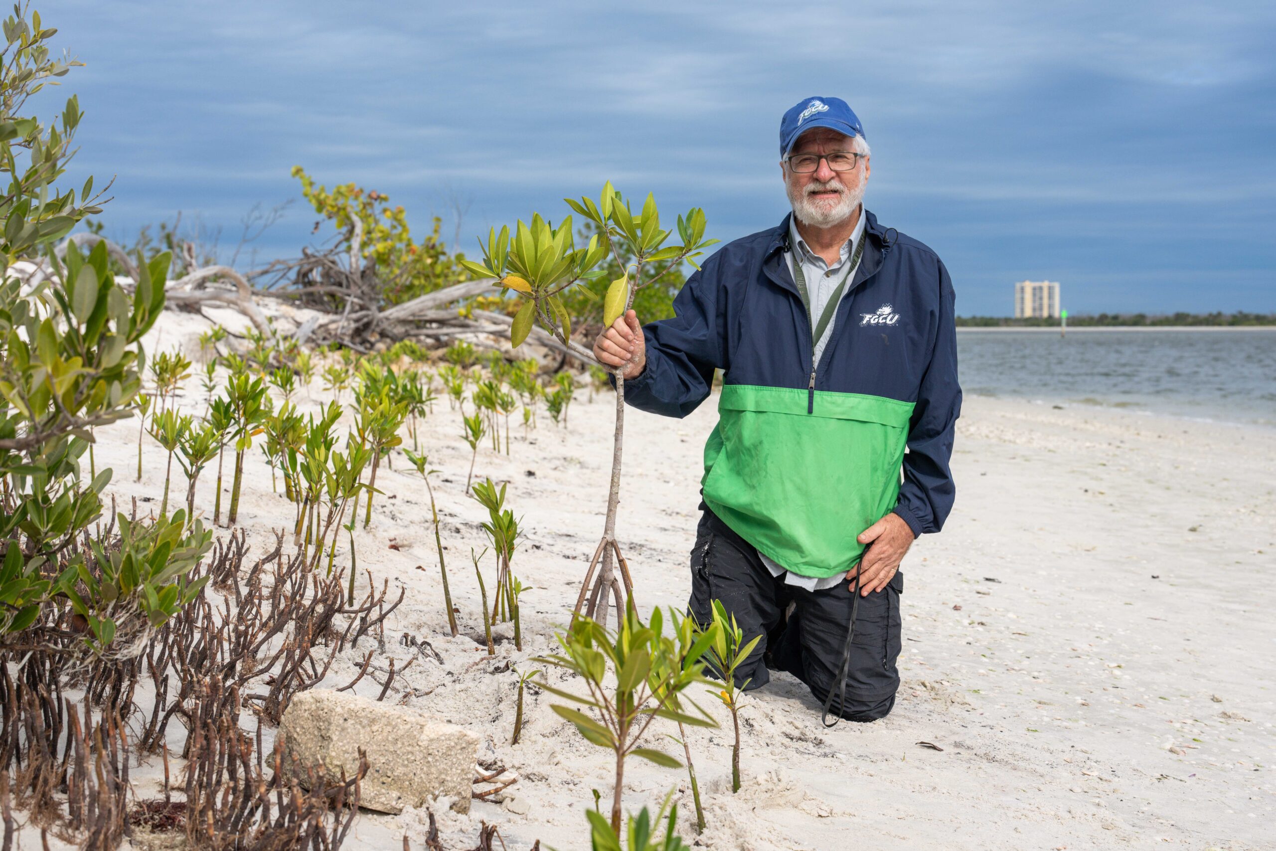 “Currently funding for mangrove restoration is being denied (which) led my college and the local high school to start gathering mangrove propagules and raising them to be implemented on the beach,” said Tristan Robbins, an FGCU senior majoring in Environmental Studies.