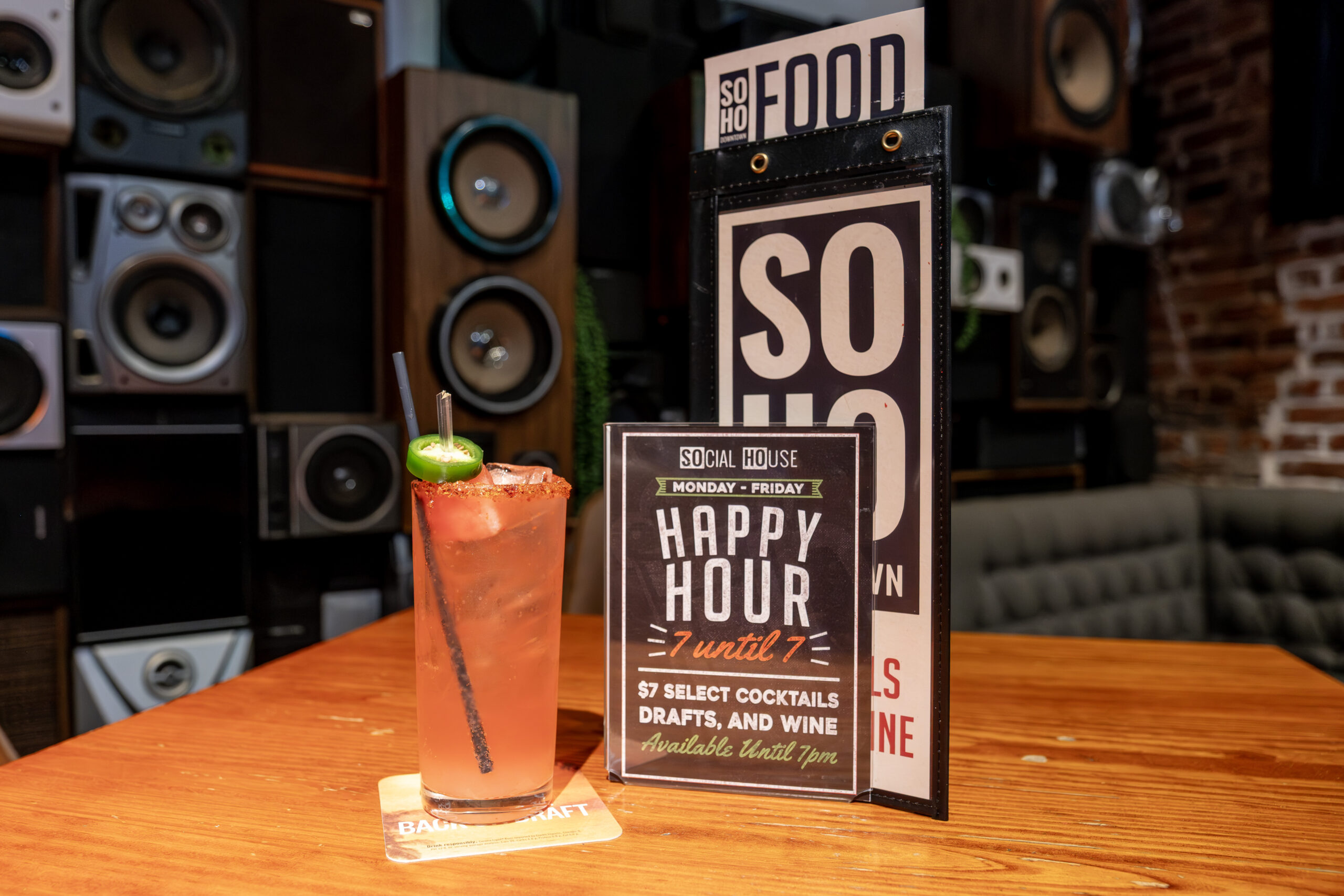 According to the website, Downtown Social House – aka SOHO – is an urban oasis, and the description feels accurate. Low modern couches and tabletops sit scattered below twinkling white lights across a generous outdoor patio. A special perk for diners with four-legged friends is the restaurant’s policy of allowing dogs in their outdoor space. SOHO embraces a celebratory vibe, hosting themed music nights like Wepa Wednesdays, embracing Latin music with a resident DJ.  Fridays and Saturdays bring a mix of live music and DJ entertainment. You might consider accompanying the live music with a specialty craft cocktail like the Watermelon Fiesta. This drink features watermelon juice, tequila and bite of jalapeno syrup. The menu options are equally spicy – if you feel adventurous. Shareables start at $11 and feature items like the  fully loaded queso, with ground beef, pica, guacamole and crema surrounded by a plate of crispy tortilla chips. The main menu is an excellent follow-up to your starters, offering familiar bites like a Philly cheesesteak loaded with both American and provolone cheeses or fish and chips –  served as a sandwich!