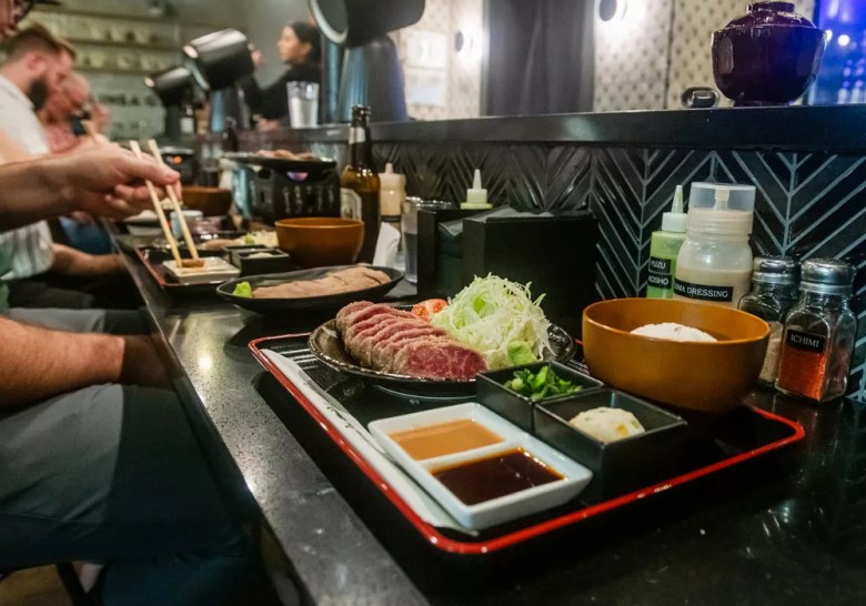 Gyukatsu Rose, inside East End Market, is the latest concept from Domu founder Sonny Nguyen, serving gyukatsu, or Japanese fried beef cutlets. Wagyu is typically used, which is seasoned, coated in breadcrumbs, and given a quick fry before being sliced rare and served alongside a mini stone grill for diners to sear to their liking. Credit: Photo by Matt Keller Lehman