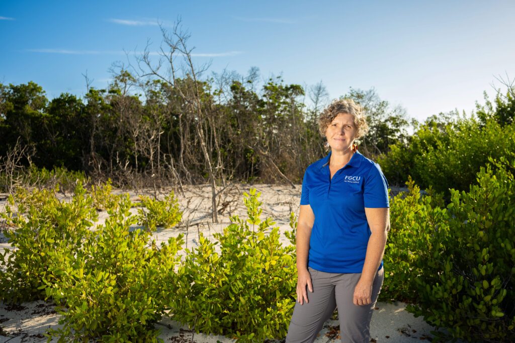 Jeannine Richards, an assistant professor in The Water School at FGCU, works with local governments to plant native coastal vegetation across berms and dunes. -PHOTO CREDIT: JAMES GRECO / FGCU
