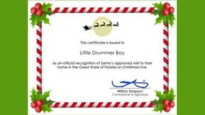 Florida Commissioner of Agriculture Wilton Simpson’s office is offering parents and guardians the chance to create the Certificates of Clearance by visiting the website christmas.fdacs.gov.