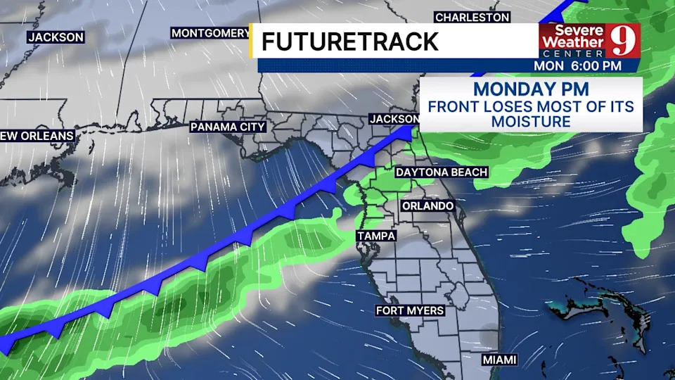 One or two small showers may develop overnight Monday into Tuesday as a cold front approaches central Florida.