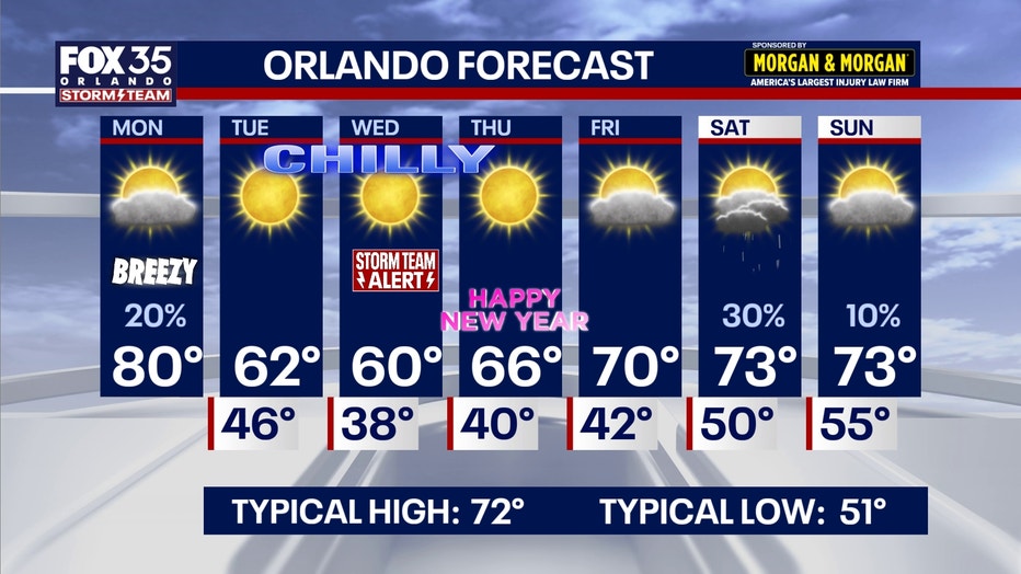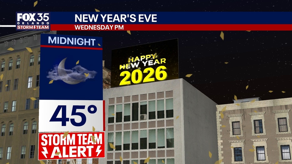 New Year’s Eve will feature an even colder forecast, which is why we’ve issued a FOX 35 Storm Team Alert for Wednesday. You’ll certainly want to adjust the wardrobe and dress warmly for any celebratory plans to ring in 2026.Â