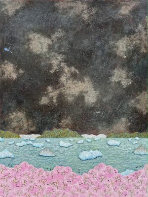 Hung Viet Nguyen selected the description mentioned above, the one with the furious sky and the pleasant foreground, which he not only found surreal but, he says, “gave me much inspiration to challenge myself into new work. I visited Iceland not long ago; the melting icebergs are still in my mind and I’m pretty much concerned about global warning.”