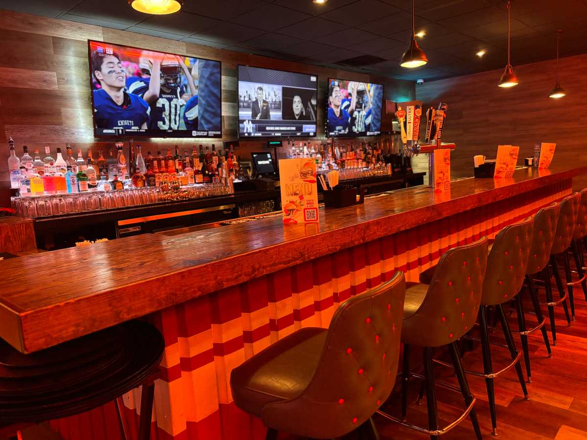 The updated sports bar features an array of craft beers, wines and cocktails, including its signature fishbowl cocktail that’s big enough for two. Photo by Renee DeLorenzo