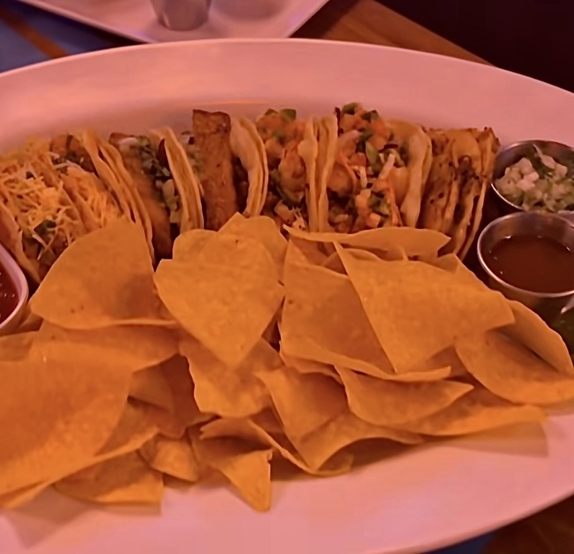 The taco flight features birria, baja shrimp, chicken tinga, mahi mahi and al pastor tacos. Photo by Kylo Basnight