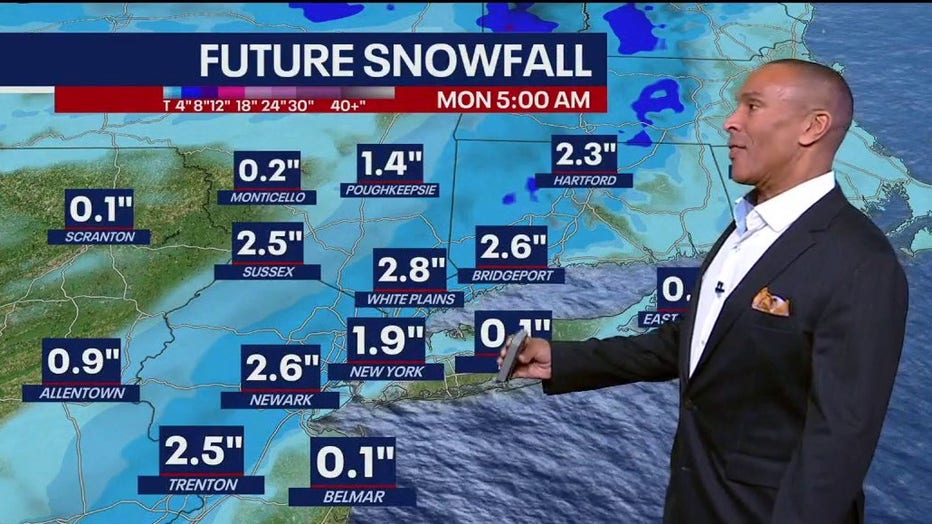 Sunday’s snowfall could bring up to 2 inches for New York City. Newark could see about 2.6 inches, while Upstate New York could get closer to 3 inches.