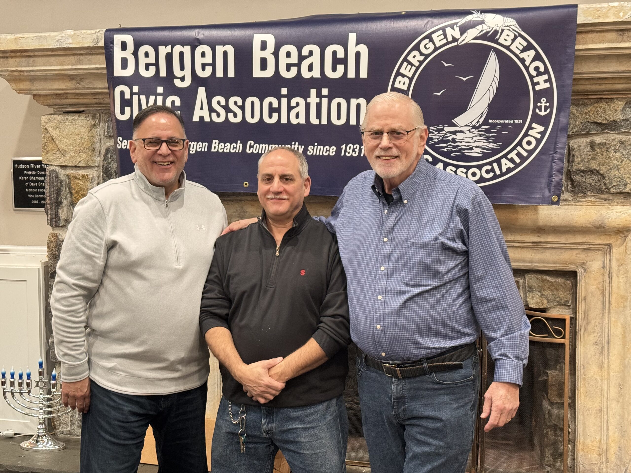From left: Bergen Beach Civic Association President Michael Trotta, immediate past President Sal Calise and past President Michael Benjamin, Esq. Photo by Arthur De GaetaFrom left: Bergen Beach Civic Association President Michael Trotta, immediate past President Sal Calise and past President Michael Benjamin, Esq.