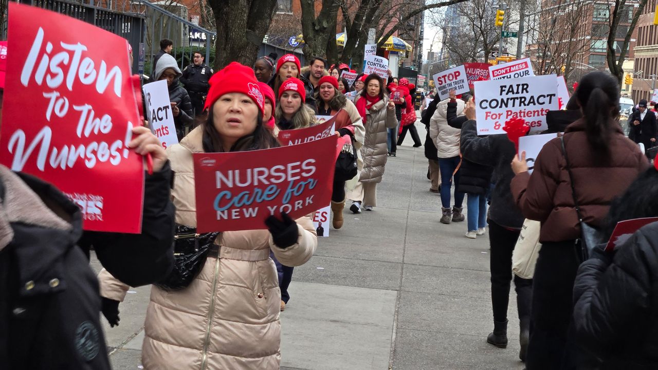 Nurses on the picket line in New York City on January 14, 2026.