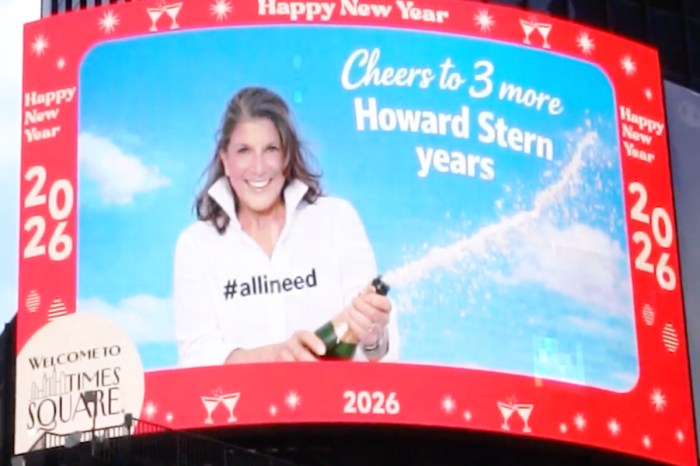 SiriusXM commemorated Howard’s recent contract renewal with a gigantic, celebratory Times Square billboard featuring the King of All Media’s likeness. Not to be outdone, longtime Stern Show superfan turned “Marty Supreme” actress Mariann from Brooklyn just put up one of her own.