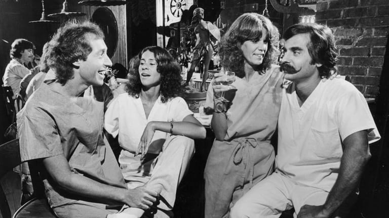 1980 At Fearn’s in Roslyn, some of the clubgoers sport surgical scrubs, a fashion trend of the time. From left, Steve and Linda Ruden and Debbie and Elliott Siegel.