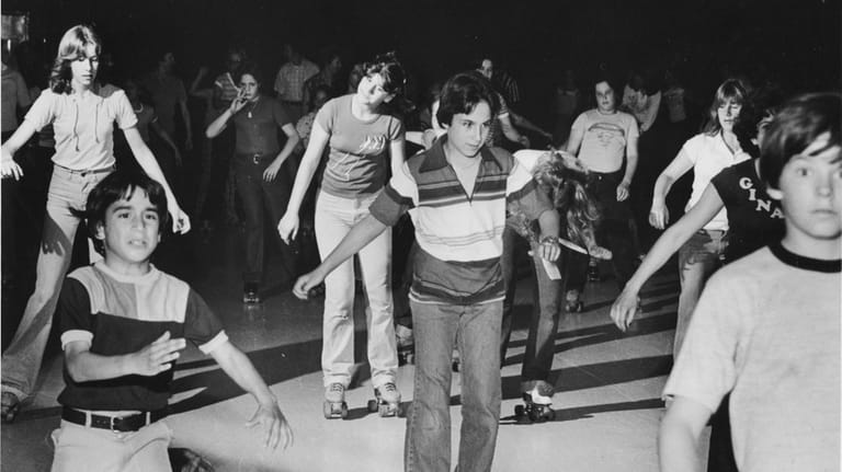 1979 Roller skaters glide to disco music at the Commack Roller Rink on Veterans Highway.