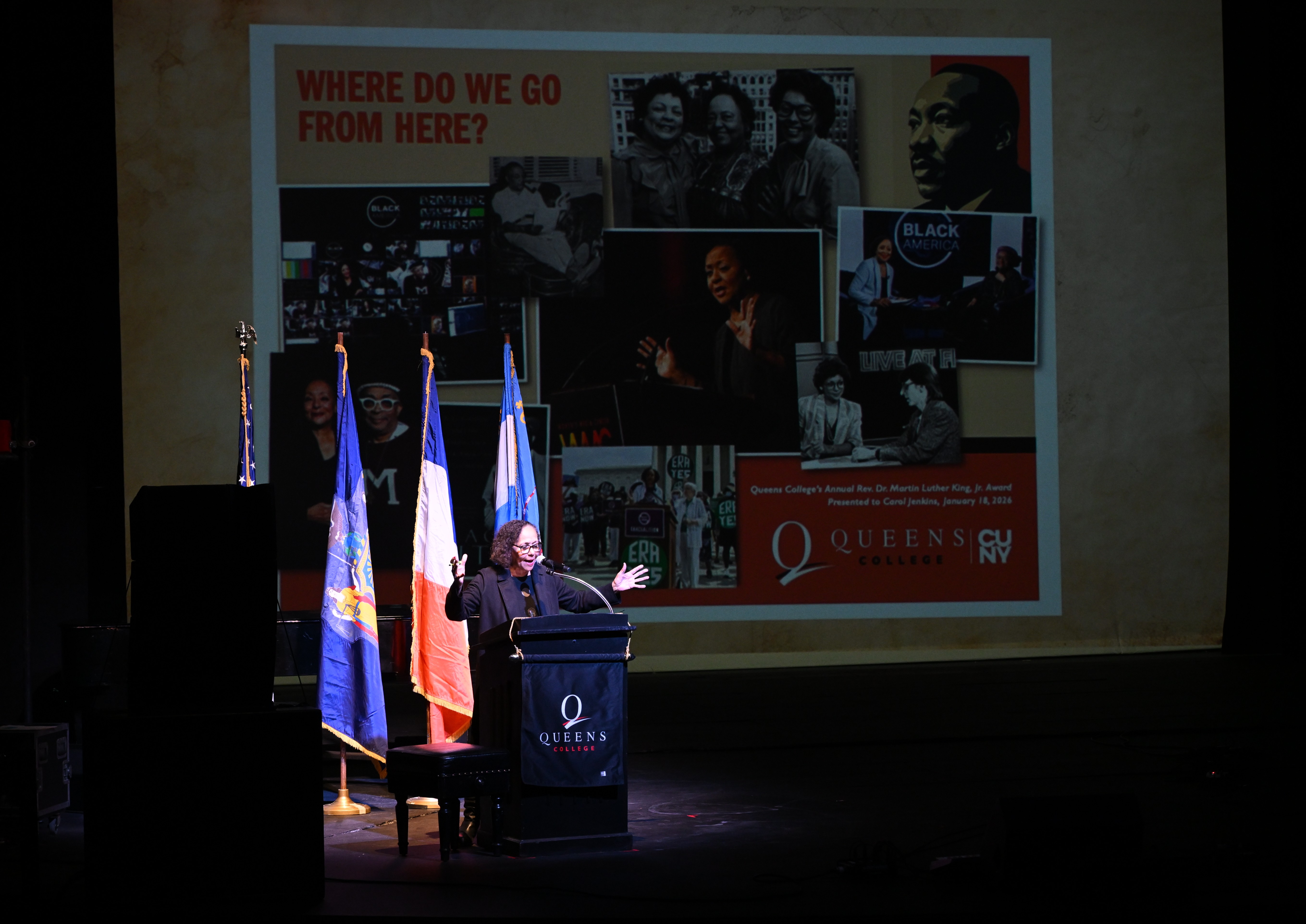 In addition to speaking at the event, Jenkins was also presented with the 2026 Queens College Reverend Dr. Martin Luther King Jr. Award, as well as a Proclamation from Richards.