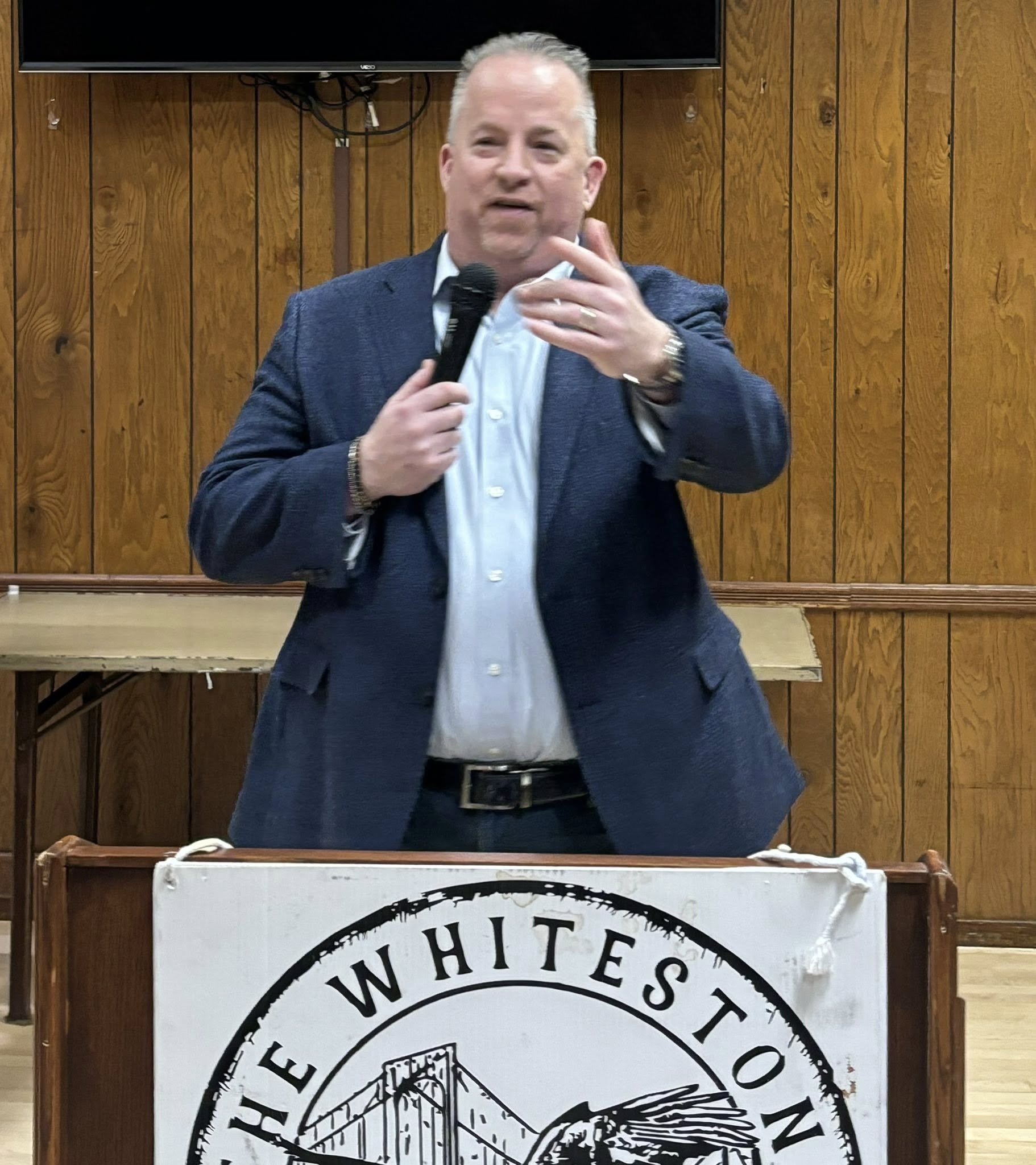 John Chell speaks at the January 2026 Whitestone Republican Club meeting. Photo by Robert Pearl