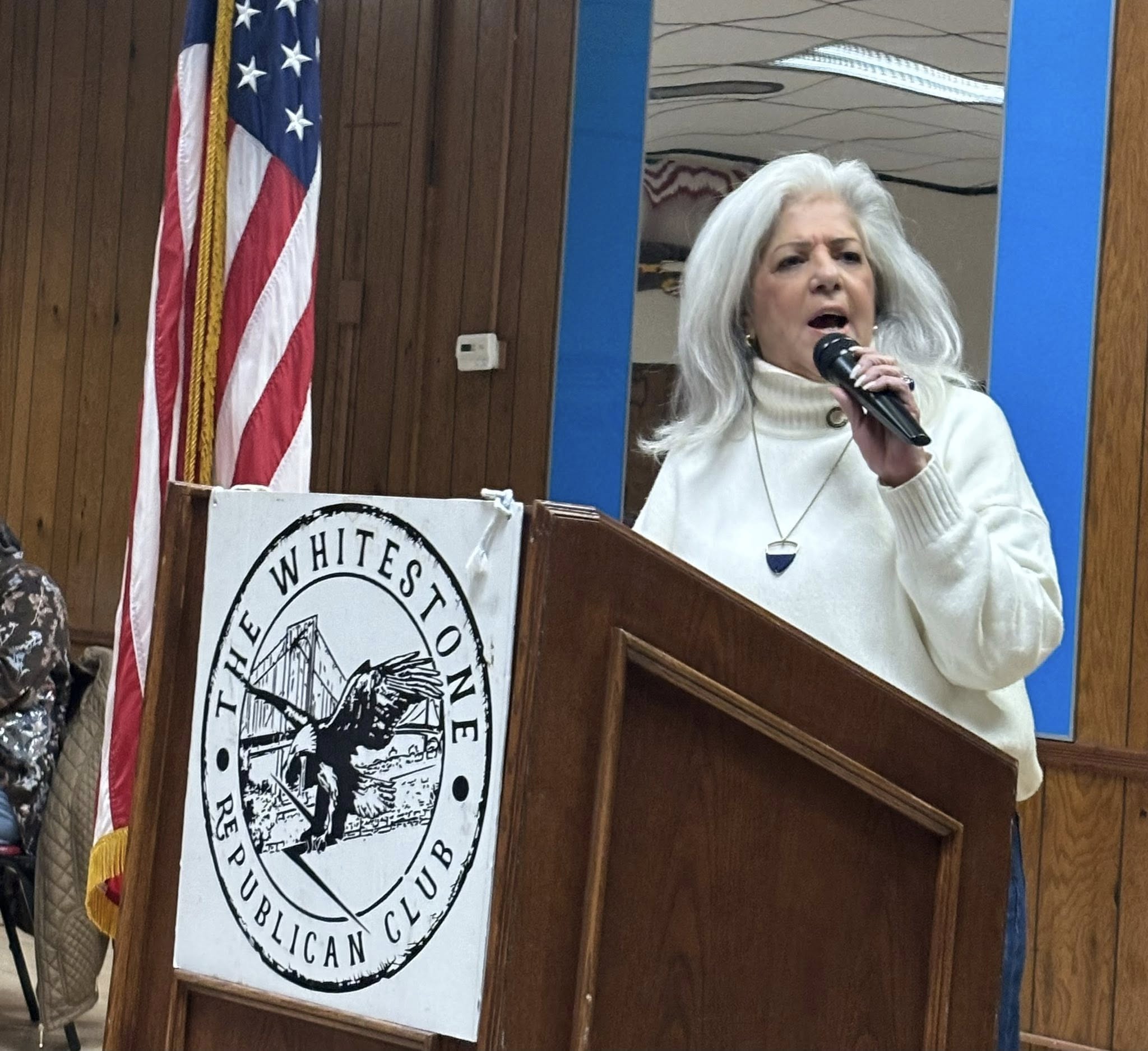 New York City Council Member Vickie Paladino speaks at the first Whitestone Republican Club meeting of 2026. Photo by Robert Pearl