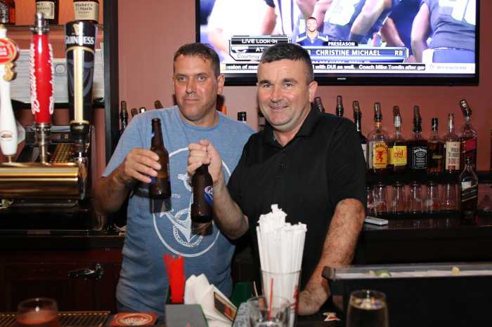 Kenny Graham and Mike Gallagher pictured at the Leif’s grand reopening party in 2014. Gallagher confirmed the watering hole’s closure over the weekend.File photo by Steven Schnibbe