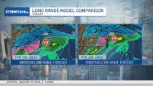 The European long-range forecast model depicts more of a northerly track to the storm. Its American counterpart is hedging the track south.