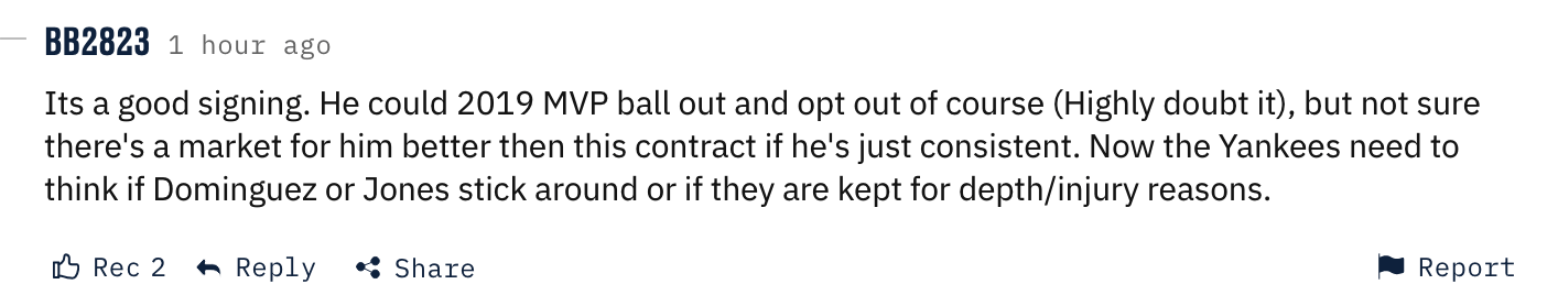 When it came to the deal itself, our lovely PSA comments’ section could be broken down into three categories. First up, we have the “We’re a better team with him, so I’m happy he’s back” group, who mostly expressed satisfaction — but perhaps not the overenthusiastic excitement that would have followed, say, a Kyle Tucker signing.