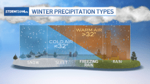The possible changeover to sleet and freezing rain in some areas results from warm air aloft in the atmosphere.  As the storm system moves offshore, this warm air will nudge into our region from the south and hover above the bitterly cold air at the surface.  The warm air at cloud level promotes rain development in the clouds instead of snow.  That rain, then, falls into the sub-freezing air at the surface and either freezes into ice pellets on its way down (sleet) or freezes on contact with the ground (freezing rain).  In either case, accumulations are put on pause.
