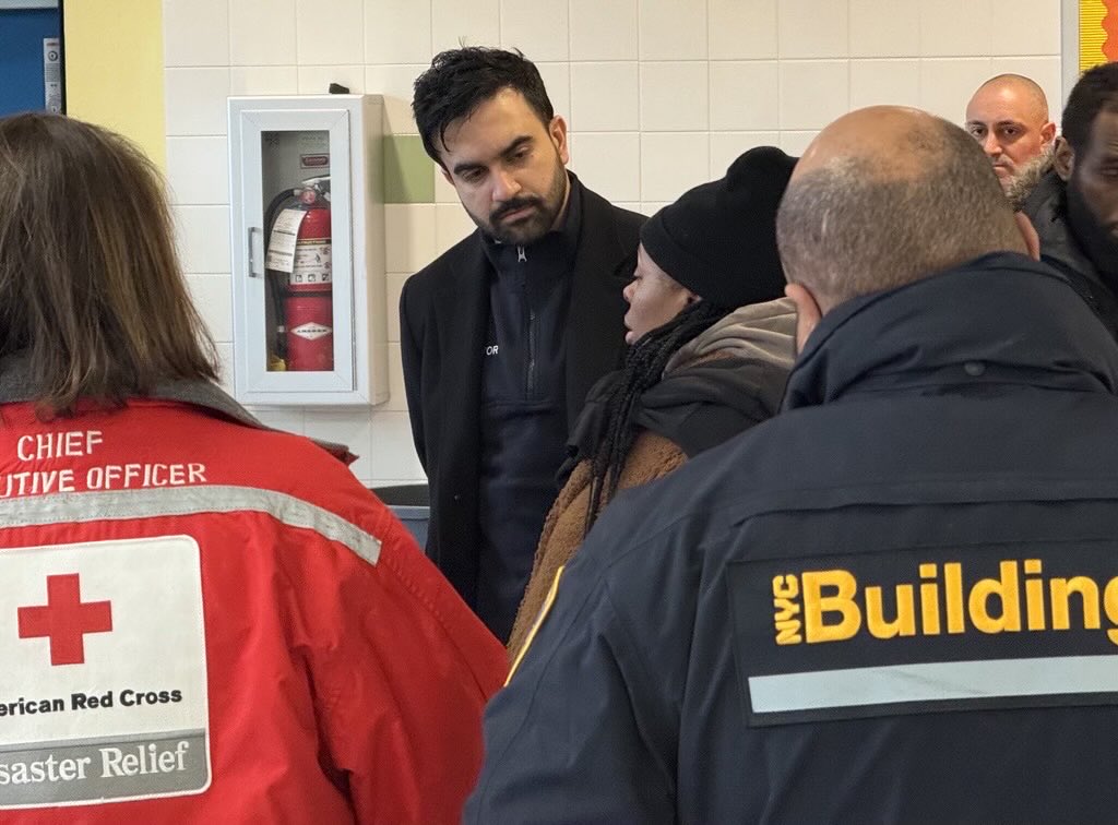 Mayor Zohran Mamdani — already busy prepping for a major winter storm set to hit New York on Sunday — met with displaced families at a nearby school that served as a Red Cross reception center. Photo via Twitter/@NYCMayor